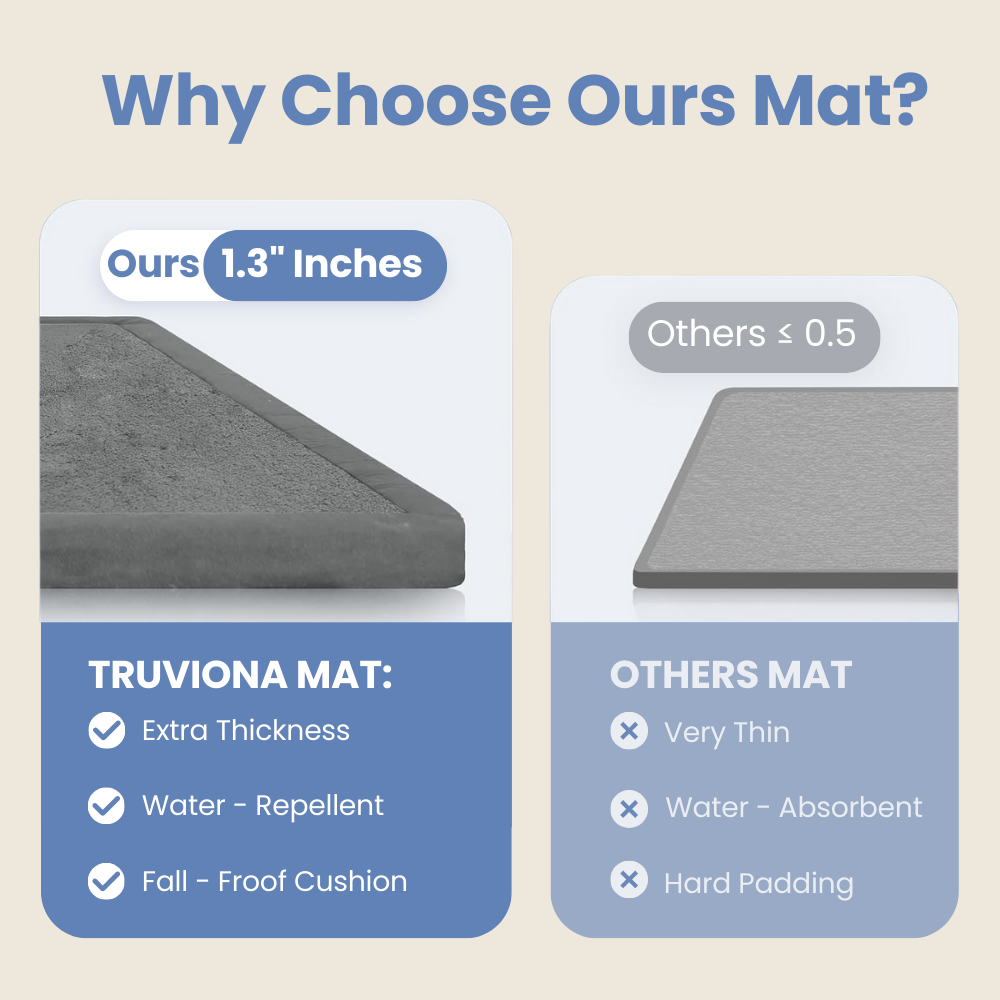 Most mats promise comfort. Truviona delivers real protection. With 1.3 inches of memory foam, non-toxic materials, and a slip-resistant base, it’s built for real life — messy moments, first steps, and peace of mind.